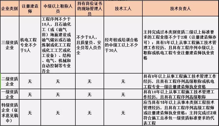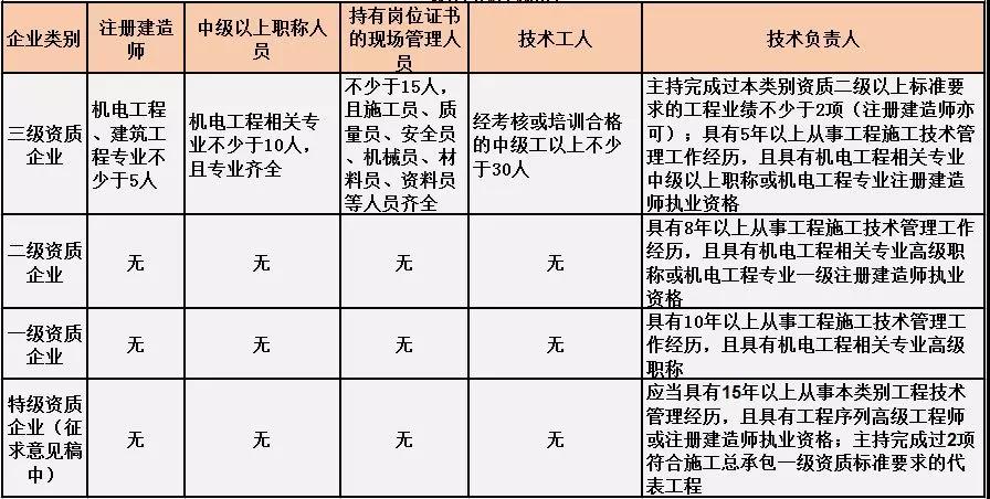機電工程施工總承包人員要求